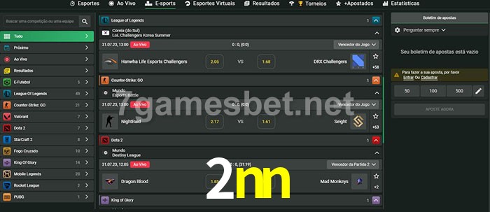 O 2nn oferece uma grande seleção de opções de apostas em e-sports com probabilidades competitivas
